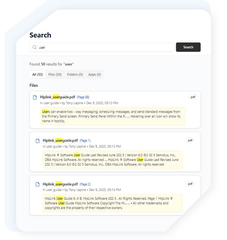 - AI Search: Search by keywords, phrases, scanned text, or intent